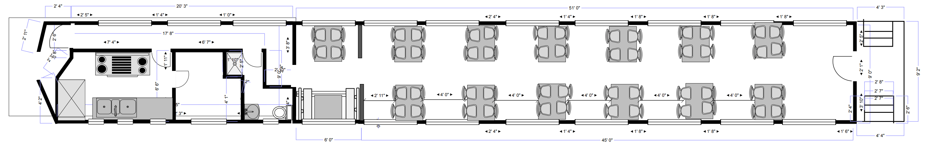 - 54 seats / 14 tables